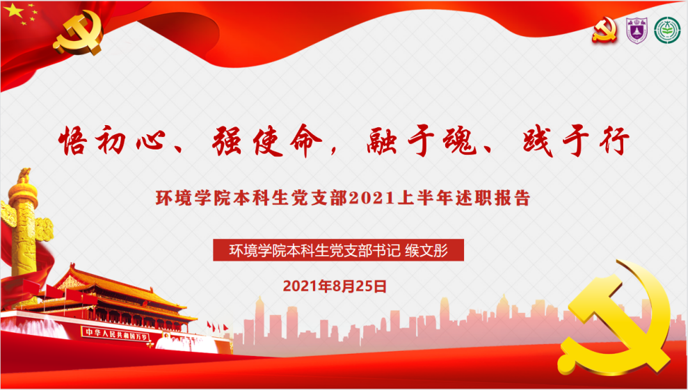第二个环节,缑文彤作题为"悟初心、强使命,融于魂、践于行"述职报告,回顾了2021年上半年支部的工作情况及建设成果。在支部建设方面,支部坚持实行"三会一课"制度,结合党史学习教育主题,深入开展"两学一做"常态化学习教育活动,通过建立《入党积极分子成长档案》进一步完善了入党积极分子管理制度;在党史学习教育方面,支部认真贯彻"学史明理、学史增信、学史崇德、学史力行"要求,围绕献礼建党100周年开展"星火菁英计划"应知应会每日分享,组织党员学习"美丽中国 红色筑梦"系列党团课,积极开展"美丽中国 红船筑梦"系列党团实践活动。支部党员赴南京市红山动物园和南京仙林外国语小学开展生物多样性科普调研,以实际行动助力绿色可持续发展,通过开展"诵红色经典,忆百年征程"诗歌朗诵会、"百年征程,携手逐梦"师生联谊拔河赛、采访美女自慰老党员同志等,引导支部成员在实践中感悟党史教育精神、锤炼党性修养、汲取初心力量,将红船精神融于魂、践于行,2021年,党支部荣获美女自慰 "先进基层党支部"荣誉称号。针对工作中存在的特色活动创新性有待提升以及志愿活动覆盖面窄等问题,缑文彤提出下半年将加强与美女自慰团学组织的联动,打造富有专业特色的本科生支部品牌活动。