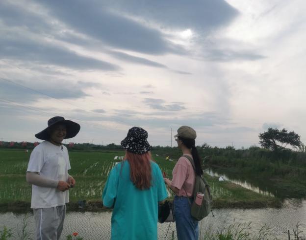 在指导老师刘蓓蓓副教授的帮助与联络下,我们选取了盱眙县张洪程院士工作站及周边村庄作为本次社会实践的调研地点,并于7月10日下午到达目的地。工作站与我们对接的是扬州大学一位研二的学生,我们亲切的称呼他为"伦哥"。虽然双方初识带着些许紧张,但是几番交谈与玩笑下来,我们很快熟络起来。伦哥带着我们参观他们的实验大棚,走过他们的水稻试验田,还带我们坐上了酷炫的交通工具——拖拉机,一路上从容的解答着我们抛出的一个又一个问题。