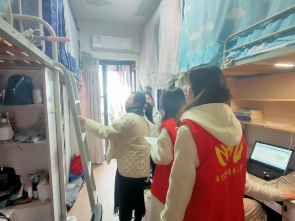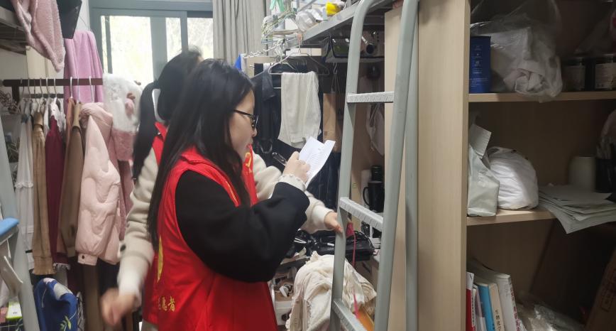 在检查过程中,辅导员和志愿者们对床铺护栏高度、扶梯稳固情况、宿舍用电安全、消防安全等方面进行全方位排查,经检查发现,同学们普遍能够遵守宿舍安全管理规定,自觉营造安全温馨的生活环境,但个别宿舍存在学生床位护栏、爬梯等部件存在松动、上层床位床垫较厚、宿舍无人情况下插线板电源未切断等33处潜在安全隐患,志愿者们将检查结果汇总后上报宿管处,由其安排物业进行维修。